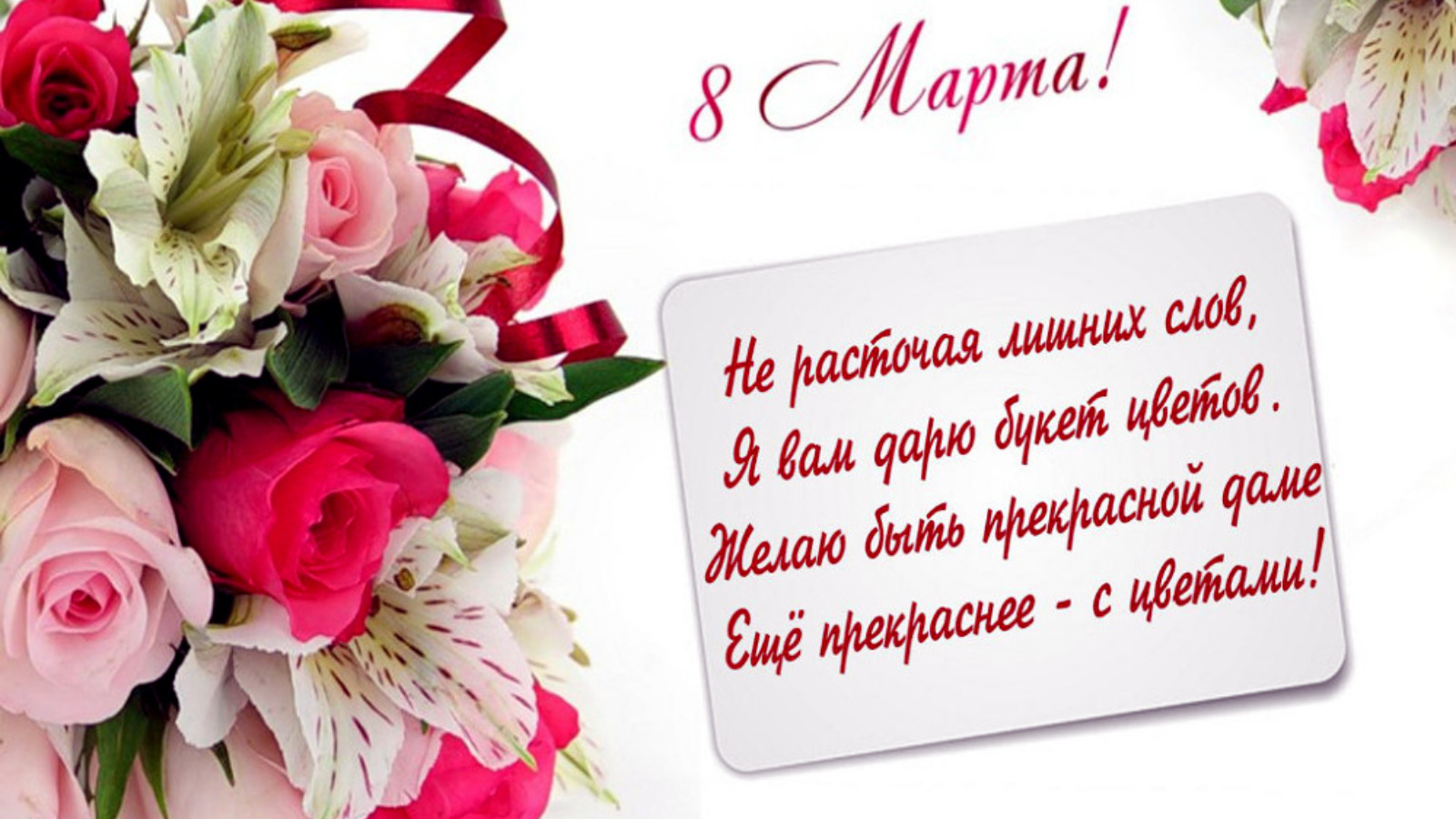Поздравляю с праздником весны! Пусть жизнь всегда будет наполнена ароматами цветущих цветов, плодами хороших дел и гармонией с окружающим миром. Пусть рядышком по жизни шагают счастье, благополучие и везение! С днем 8 марта!