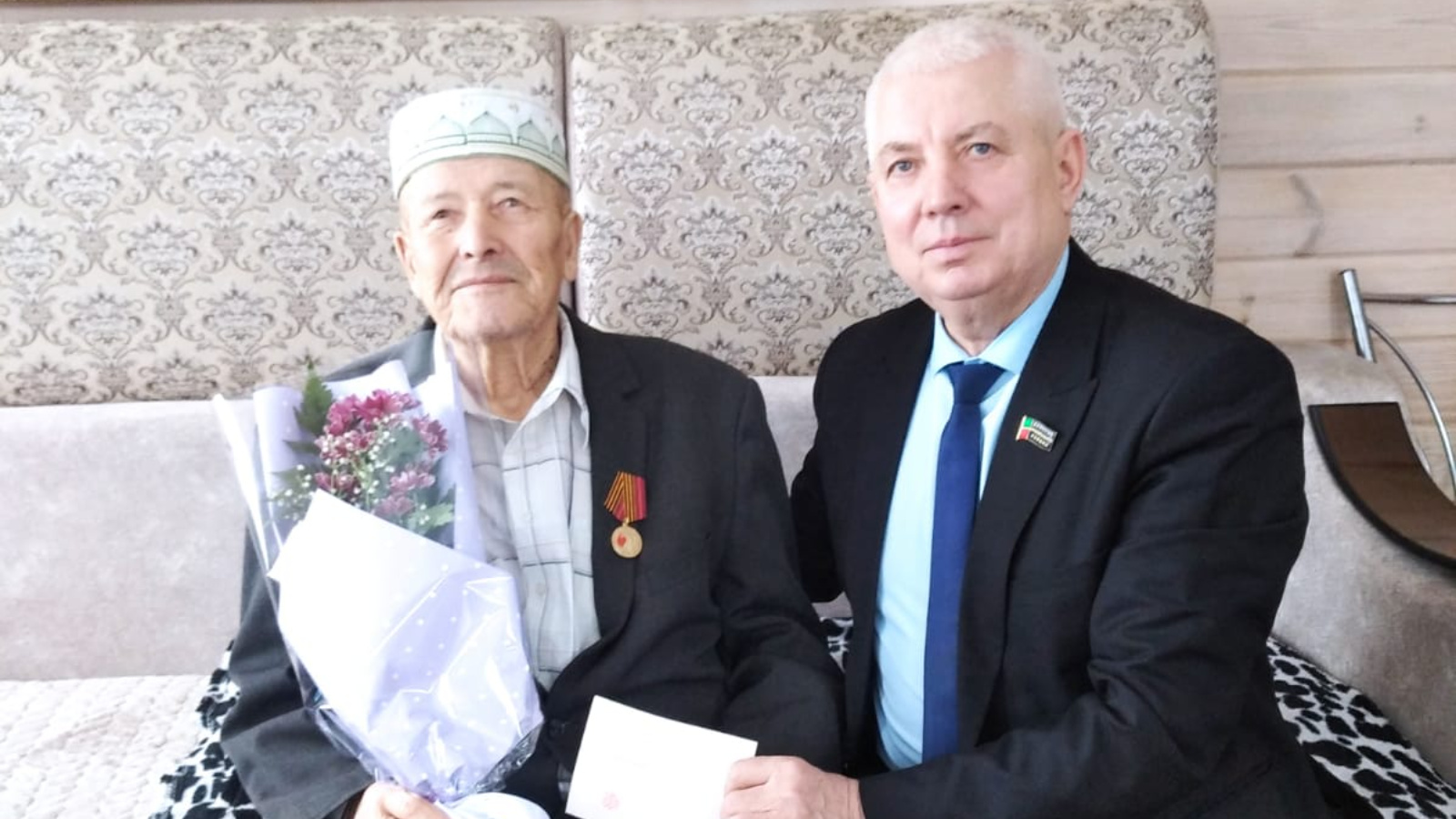 Сегодня, 11 февраля 2025 года, заместитель главы Дрожжановского района Алексей Егорович Ярухин и глава Звездинского сельского поселения Марина Вячеславовна Денисова вручили юбилейную медаль "80 лет Победы в Великой Отечественной войне 1941-1945 гг." труженику тыла жителю села Чепкас-Ильметьево Гиниятуллину Сафиулле Гиниятулловичу.