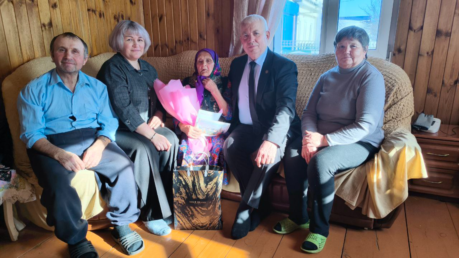 Выразили искреннюю благодарность за труд на благо родного края, вручили поздравительную открытку от имени Президента России Владимира Путина, поздравительное письмо и подарок от главы Дрожжановского района Марата Ринатовича Гафарова.