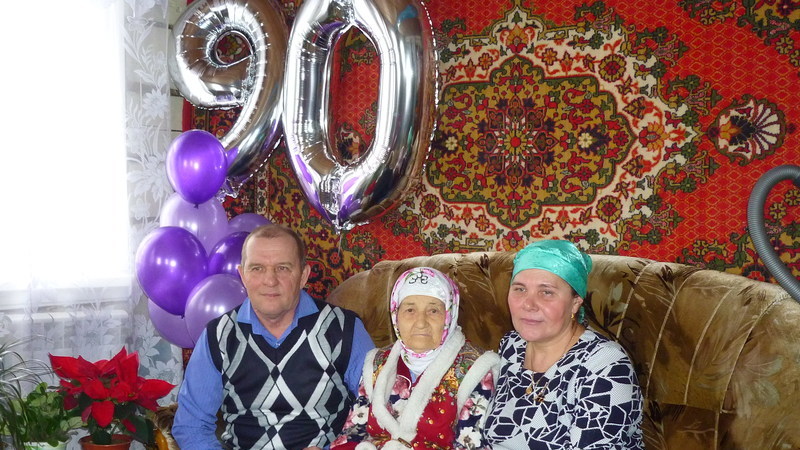 Авыл җирлеге башлыгы В. П. Григорьев шулай ук юбилярны котлады һәм аңа зур сәламәтлек теләде һәм чәчәк бәйләме тапшырды.